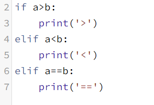 2. a가 b보다 클 경우에는 '>'를 출력하고, a가 b보다 작을 때는 '<'를 출력하며 a와b가 같을 경우에는 '=='를 출력하라는 조건이 있으므로 이를 따라 조건문을 작성해준다.