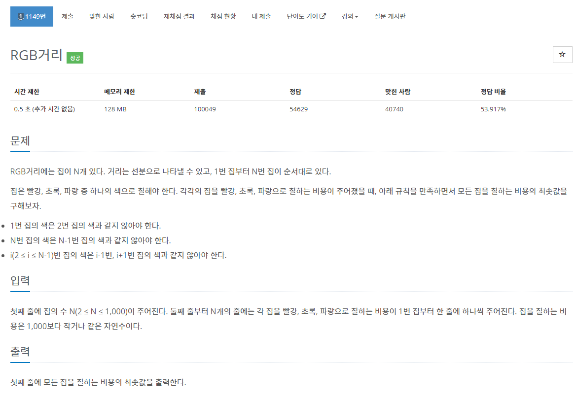 | [백준/C++] 1149번 : RGB거리 (0) | 2023.07.23 |