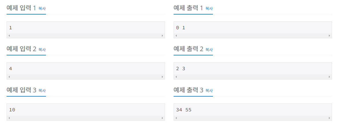 로 n-1번째와 n-2번째를 더한 것이 n번째임을 알 수 있다