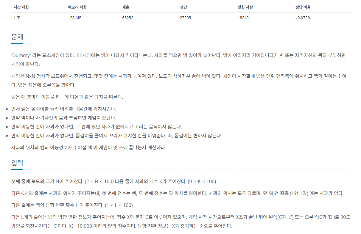 https://www.acmicpc.net/problem/3190