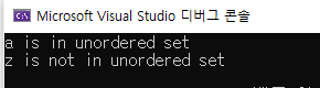 if (c1.find('z') == c1.end()) cout << "z is not in unordered set\n";