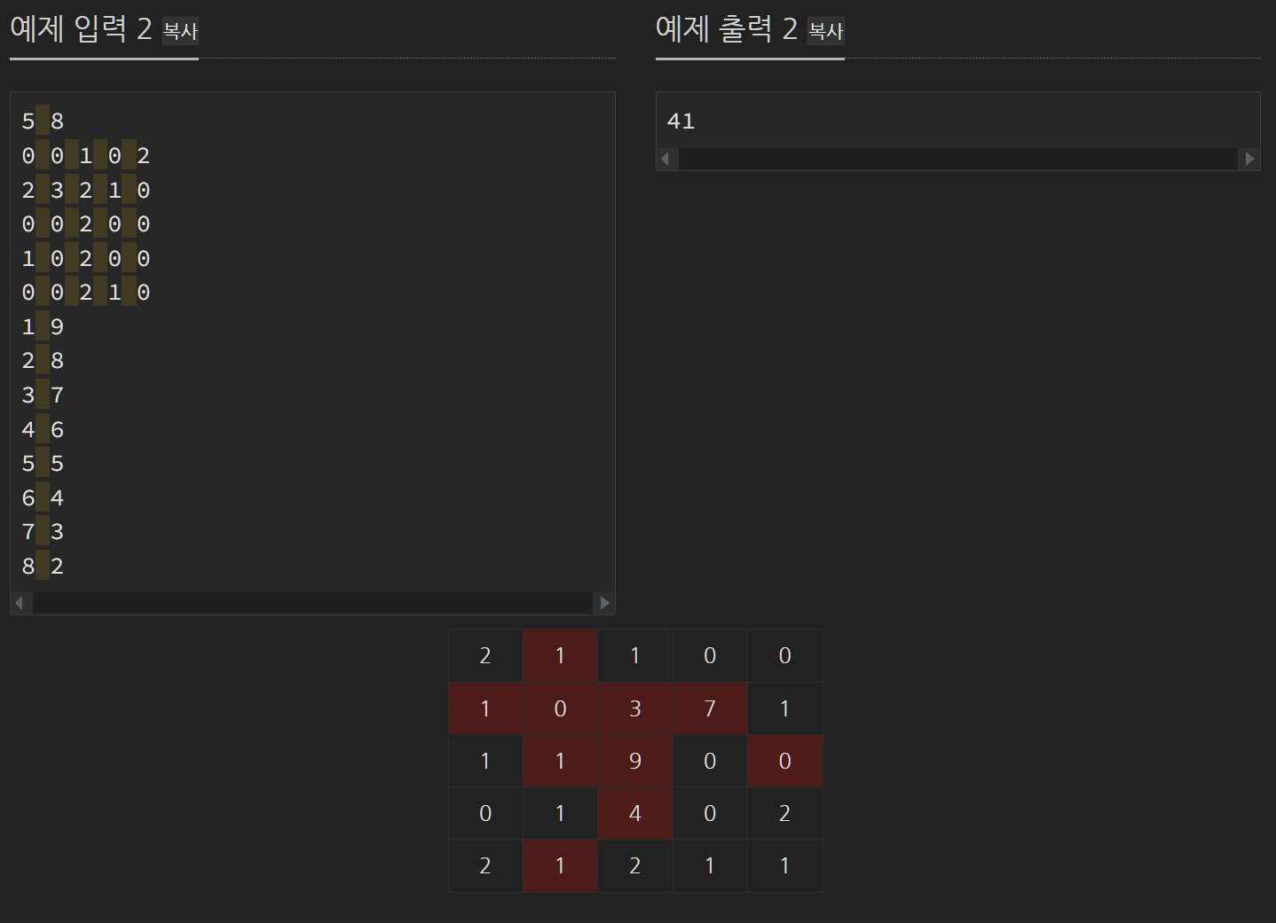 다음 M개의 줄에는 이동의 정보 di, si가 순서대로 한 줄에 하나씩 주어진다.