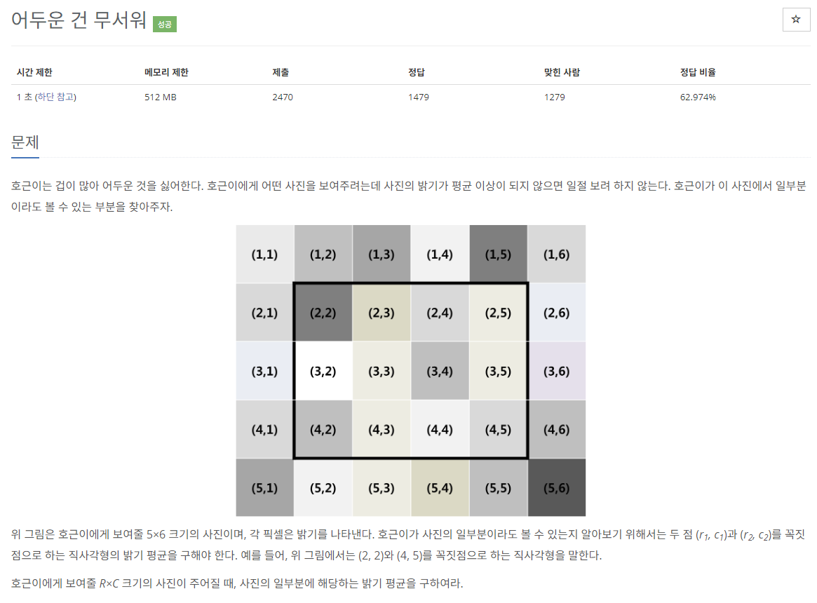 R*C 크기의 사진에 대한 밝기가 주어지면, 사진의 일부분에 해당하는 밝기 평균을 구하는 문제이다.