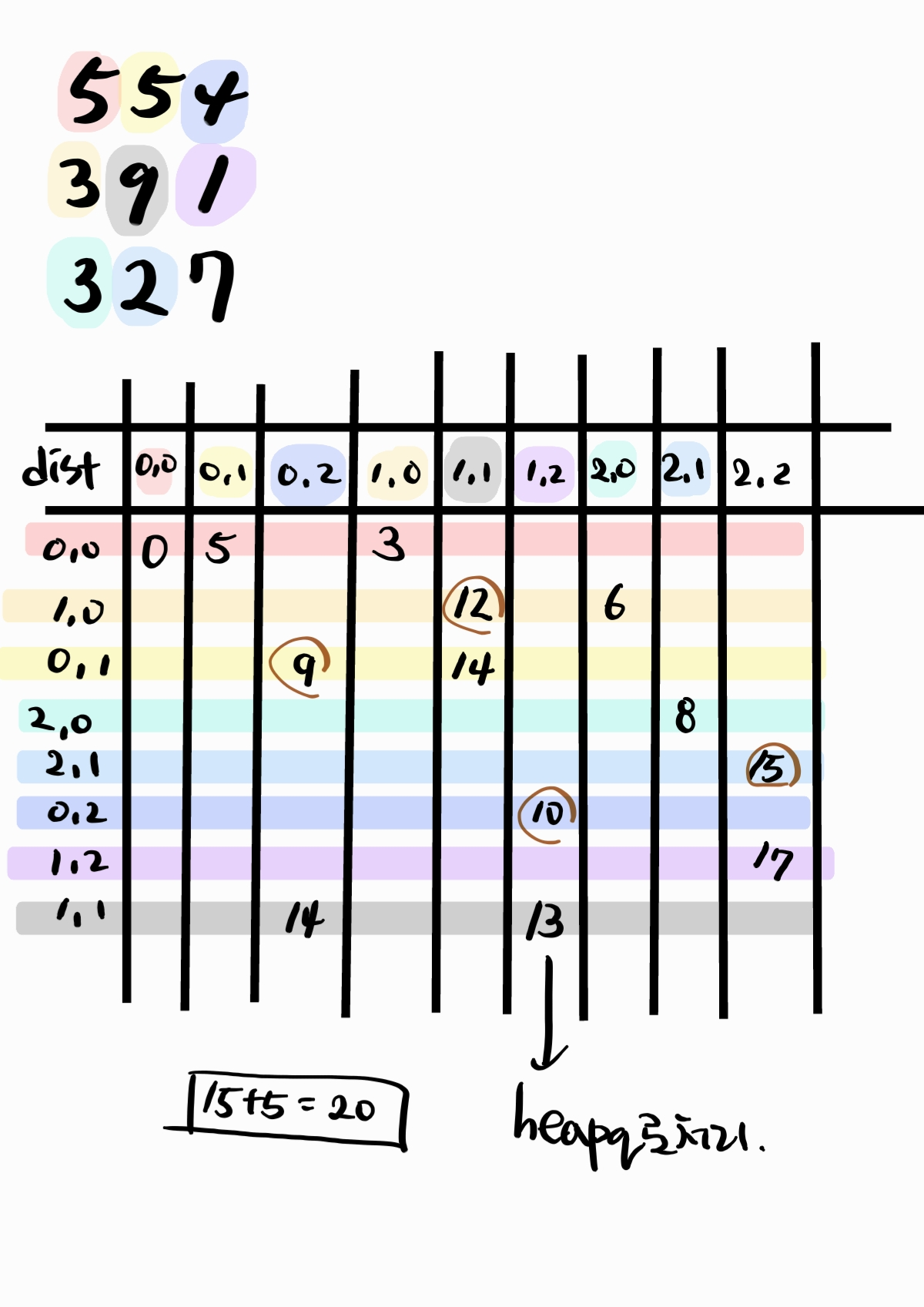 3. dist[i][j]에 대해 발생한 수들을 전부 우선순위 큐로 처리