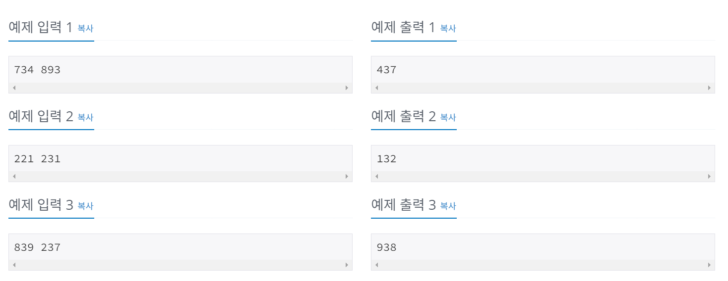 두 수가 주어졌을 때, 상수의 대답을 출력하는 프로그램을 작성하시오.