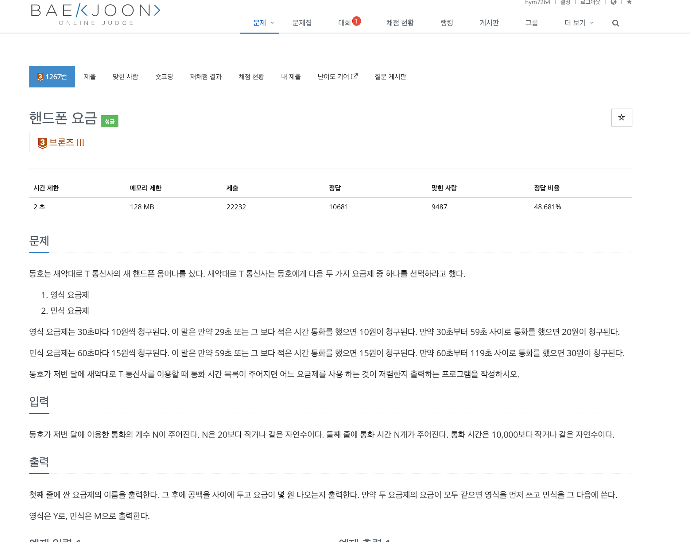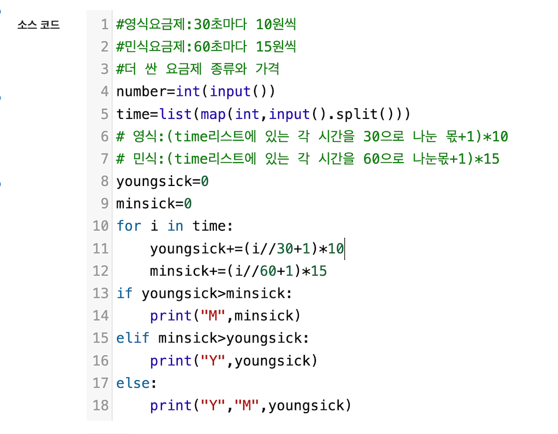 5) 따라서 이런식으로 누가 요금을 더 적게 내도 되는지 조건문을 작성하여 문제를 풀었다.