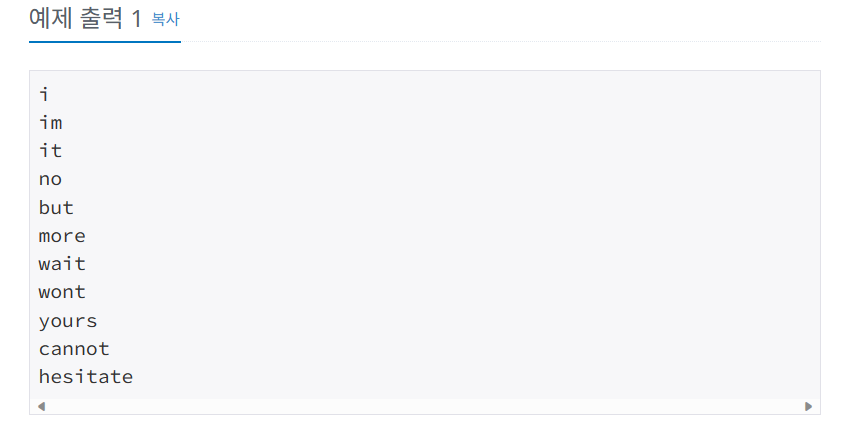단, 중복된 단어는 하나만 남기고 제거해야 한다.