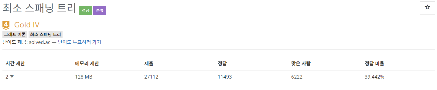 추가적으로 백준 1922번 - 네트워크 연결 문제도 위와 똑같은 코드로 Accept 받음!
