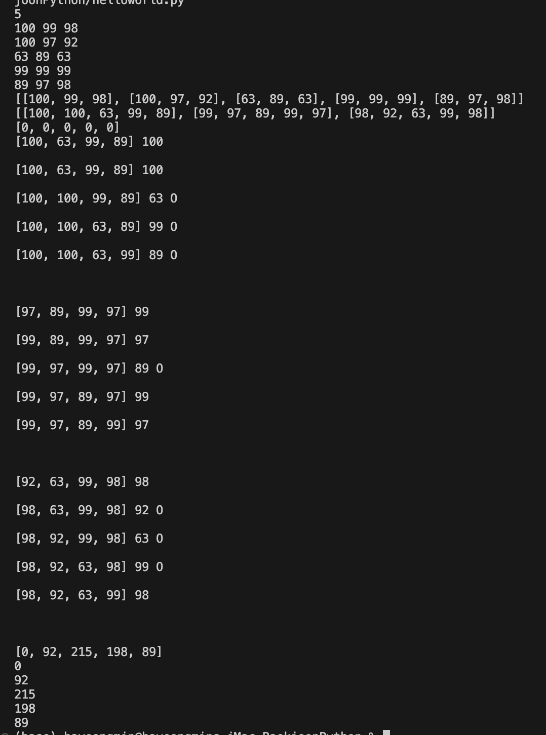#3번사람:[63, 89, 63], 4번사람:[99, 99, 99], 5번사람:[89, 97, 98]]