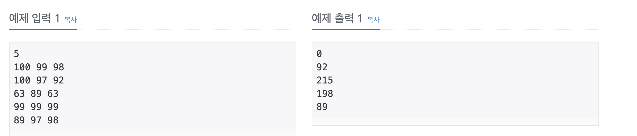 #[1번사람: [100, 99, 98], 2번사람:[100, 97, 92],