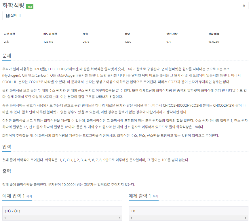 2257번: 화학식량