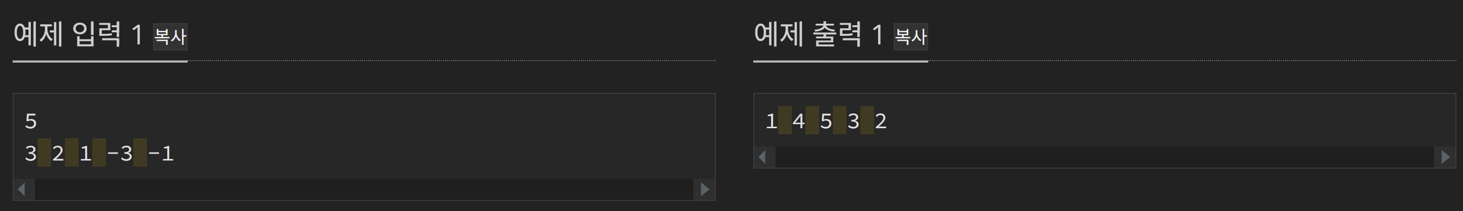 1번부터 N번까지 N개의 풍선이 원형으로 놓여 있고. i번 풍선의 오른쪽에는 i+1번 풍선이 있고, 왼쪽에는 i-1번 풍선이 있다. 단, 1번 풍선의 왼쪽에 N번 풍선이 있고, N번 풍선의 오른쪽에 1번 풍선이 있다. 각 풍선 안에는 종이가 하나 들어있고, 종이에는 -N보다 크거나 같고, N보다 작거나 같은 정수가 하나 적혀있다. 이 풍선들을 다음과 같은 규칙으로 터뜨린다.