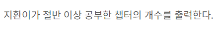 절반 이상 공부한 챕터의 개수를 chap 이란 변수에 저장하기로 우선 정했다.