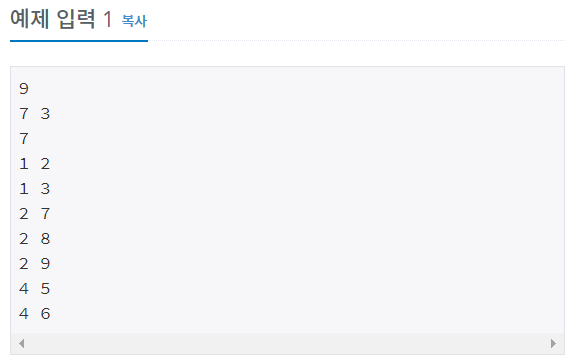 | 촌수를 구할 사람의 번호 | 7, 3 |