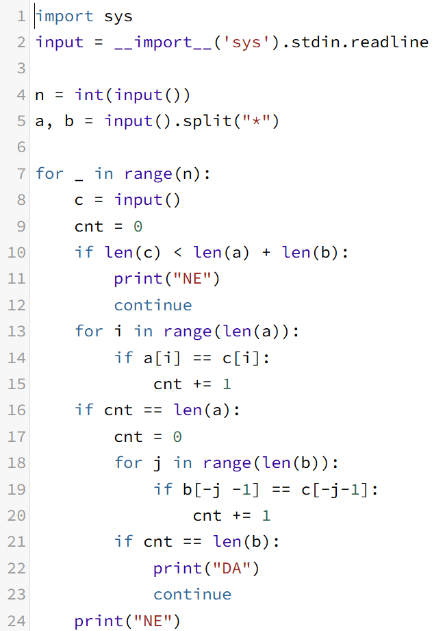 패턴을 *를 기준으로 split해 문자열 a와 b로 쪼갠다.