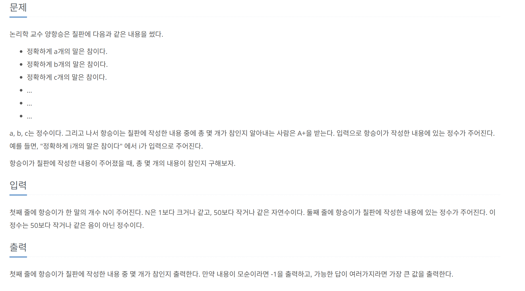 2. 앞에서부터 n개의 말은 참이다.라는 주장이 n개 있다면 그 것이 참이므로 n을 출력할 수 있다.