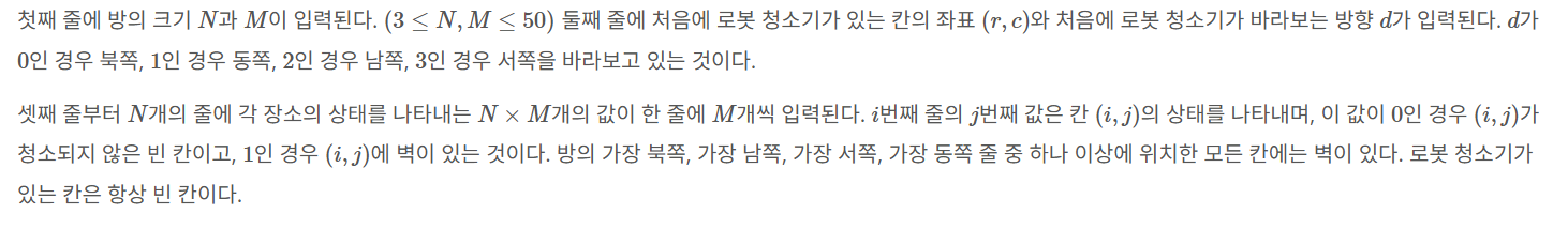 2. 로봇 청소기가 청소할 수 있는 칸이 있으면 그 칸을 청소하고 이동합니다.