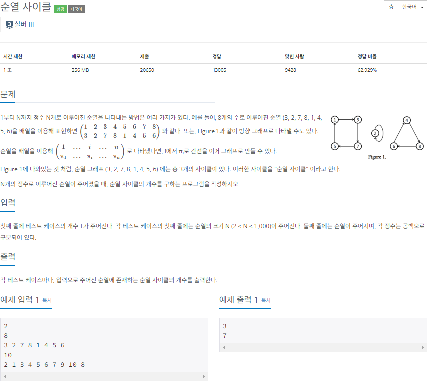 순열이 주어졌을 때, 존재하는 사이클의 수를 출력하는 문제이다.