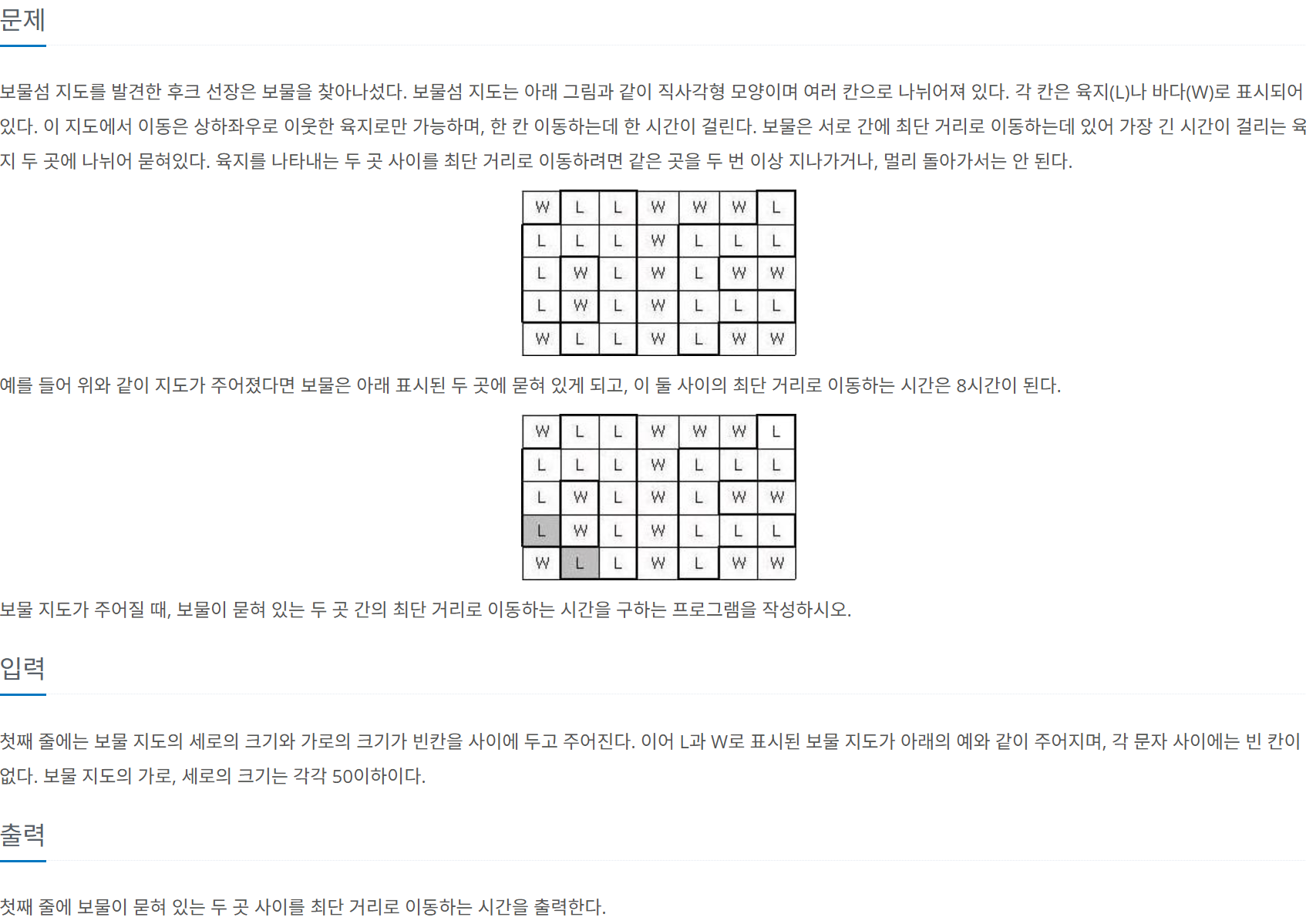 2. 육지("L")로 이루어진 그래프가 여러 개 있을 수 있으므로, 모든 점을 기준으로 BFS를 구하고 거리의 최댓값을 구한다.