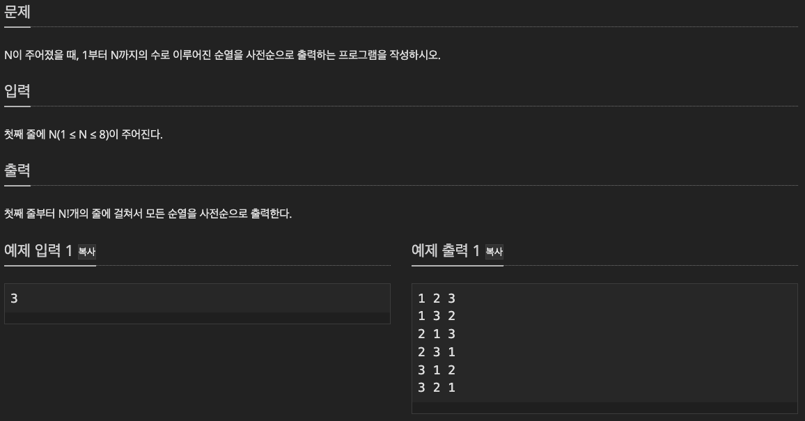 https://www.acmicpc.net/problem/10974
