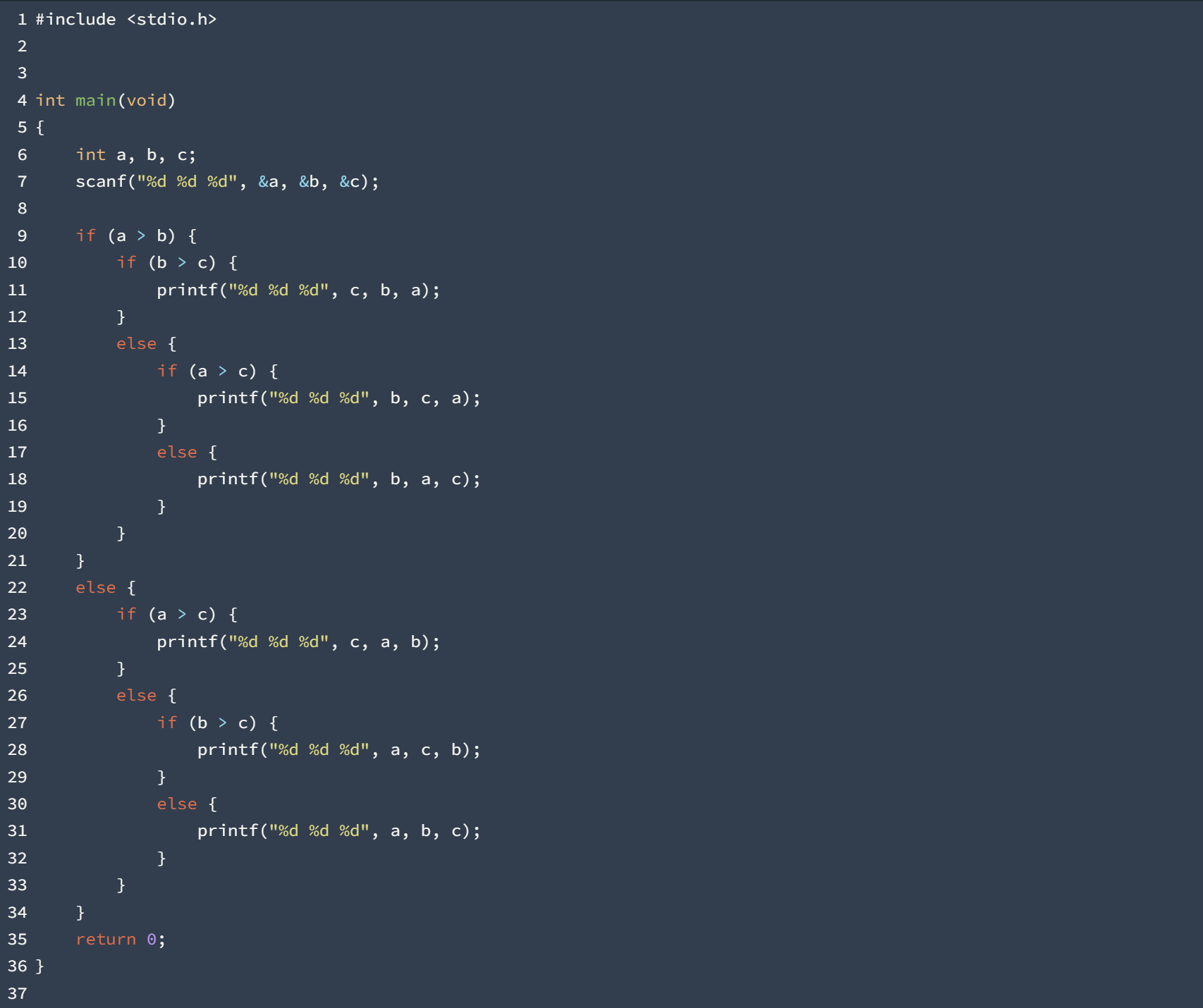 1. 세 수 중 앞의 두 수를 조건문을 이용하여 대소를 비교