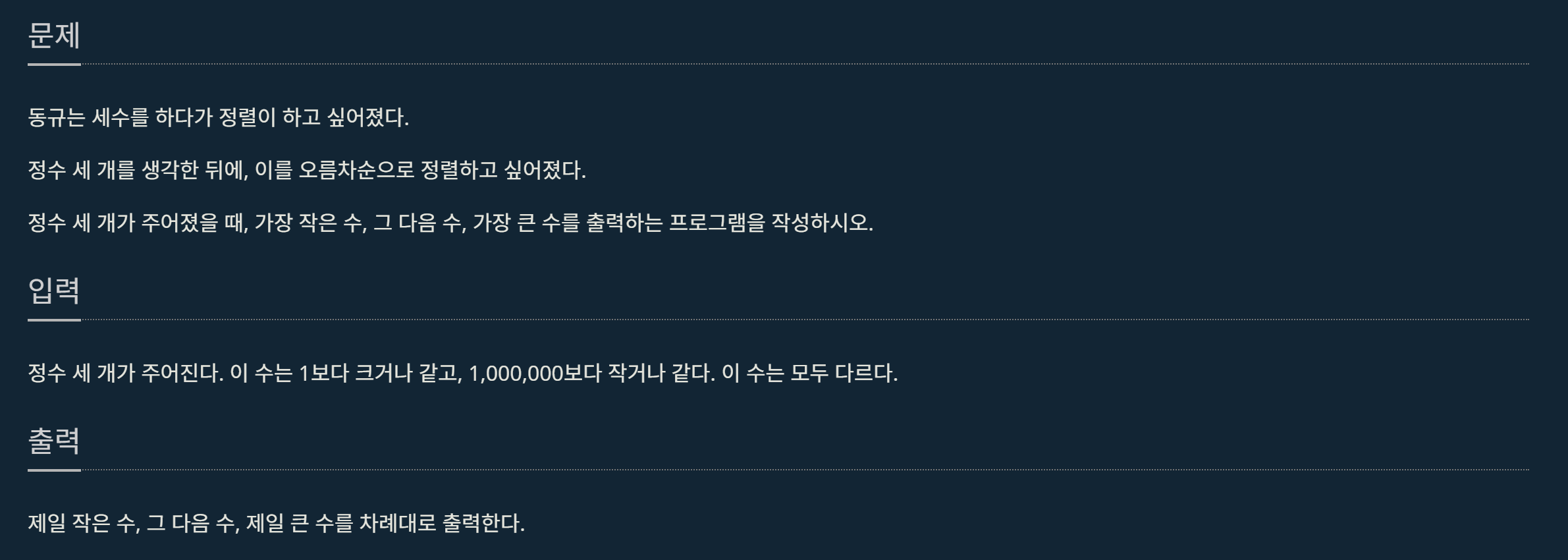 2. 앞의 두 수중 더 작은 수와 나머지 수의 대소를 비교