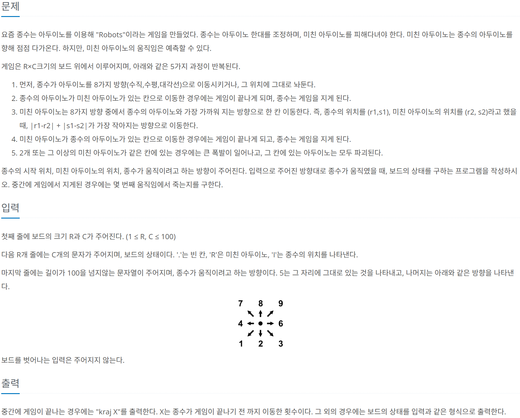 2. 만약 종수의 아두이노가 움직인 자리가 미친 아두이노가 있는 자리라면 바로 게임을 끝내고 이 순간까지 이동했던 횟수를 출력한다. ex) kraj X