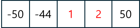 첫째 줄에는 전체 용액의 수 N이 입력된다. N은 2 이상 100,000 이하의 정수이다. 둘째 줄에는 용액의 특성값을 나타내는 N개의 정수가 빈칸을 사이에 두고 오름차순으로 입력되며, 이 수들은 모두 -1,000,000,000 이상 1,000,000,000 이하이다. N개의 용액들의 특성값은 모두 서로 다르고, 산성 용액만으로나 알칼리성 용액만으로 입력이 주어지는 경우도 있을 수 있다.