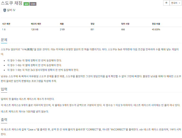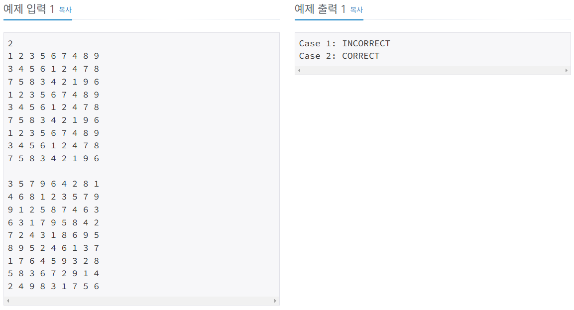 각각의 경우에 대해 checked 배열을 이용하여 1~9를 카운팅해주고 해당 배열에 False가 존재한다면 1~9가 각각 1개씩 존재하지 않게 되므로 False처리를 해주면 된다.