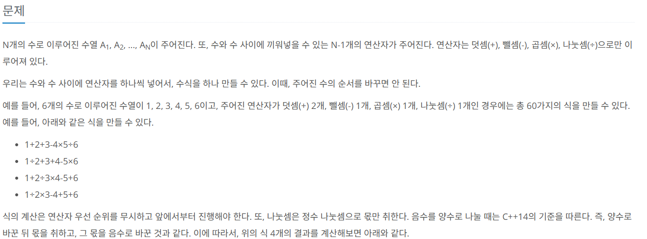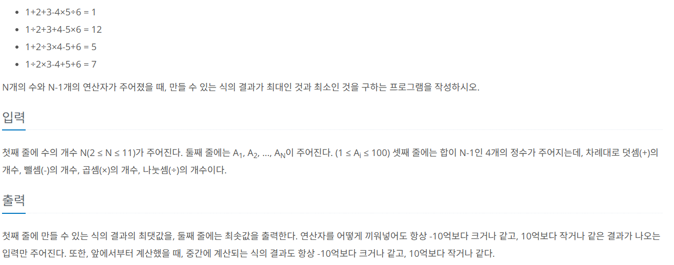 문제에서 n의 개수는 2~11개, 연산자의 개수는 4개임을 알려줬으므로 각각 11개와 4개의 배열을 생성한다.