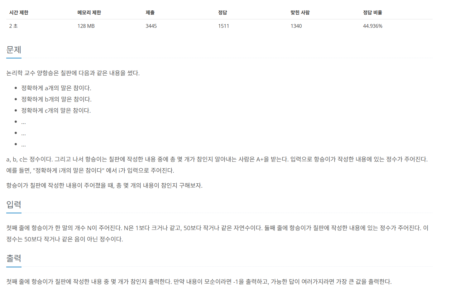 이런 3개의 문장이 칠판 위에 쓰여져 있고, 이 문장들 중 몇 개의 문장이 참인지 가려내야 한다.