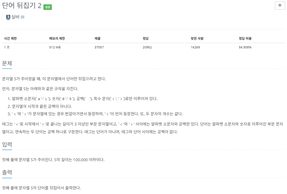 단어를 뒤집어서 출력하면 되는 문제이다. 하지만, 태그안에 있는 단어는 뒤집지 않아야 한다.