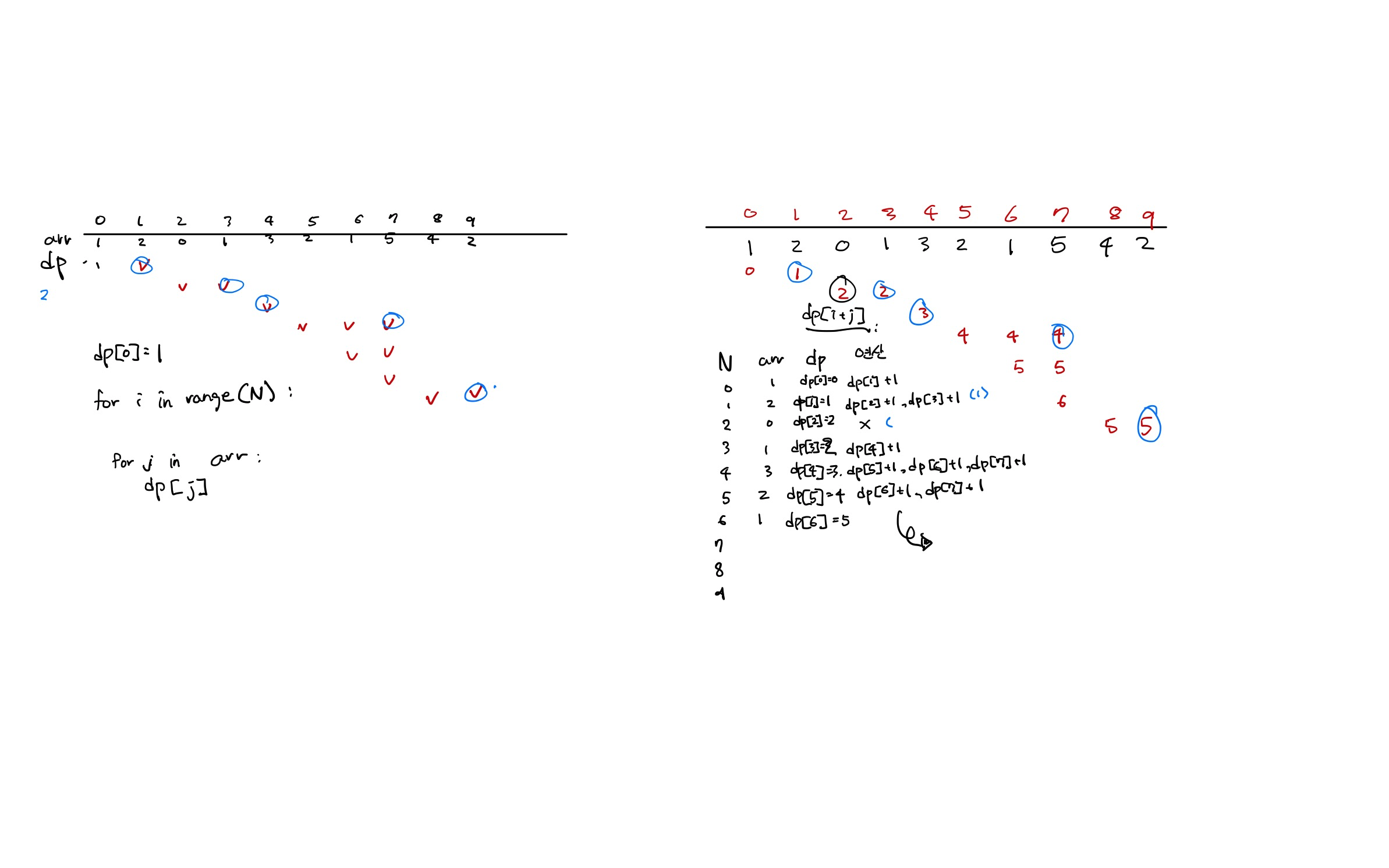 [0 ~ N) 범위의 지역을 방문할 수 있을 텐데요, 방문 정보를 담을 배열은 dp 라고 부르고 배열의 N번째 인덱스의 값은 N번째 영역에 도달하기까지 점프한 횟수라고 하겠습니다.
