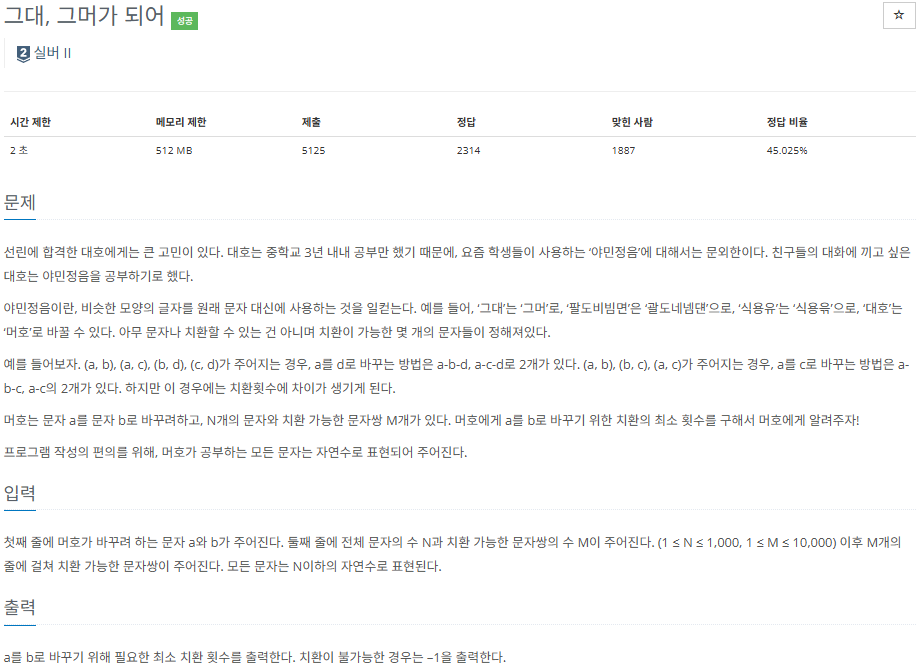 각 지점까지의 거리를 -1, 초기값으로 설정하고 a를 시작점으로 하여 bfs를 수행해주면 된다.