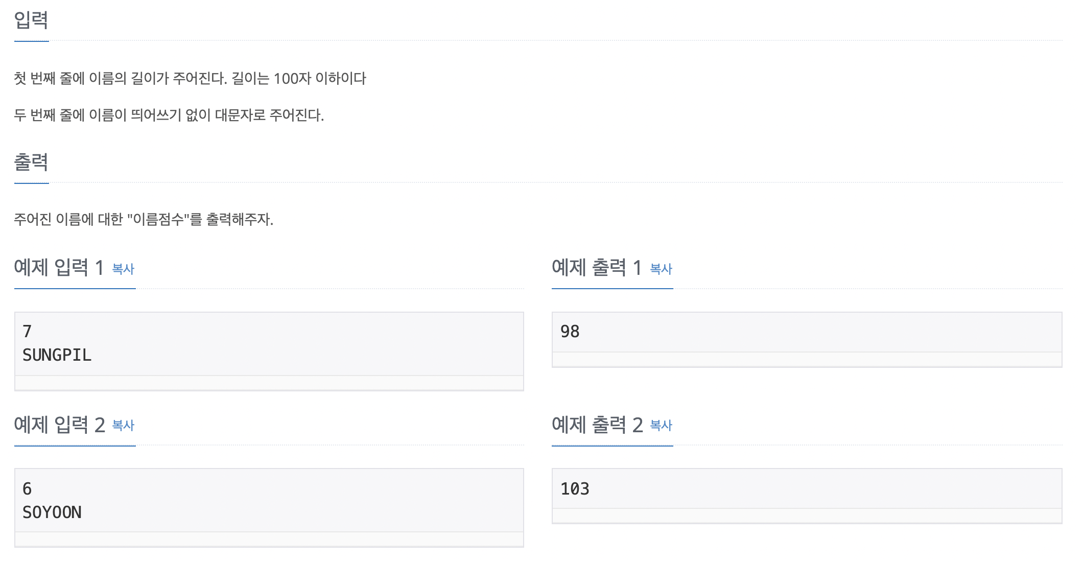 15813번: 너의 이름은 몇 점이니?