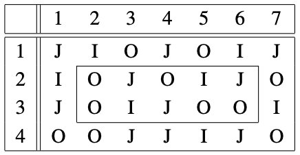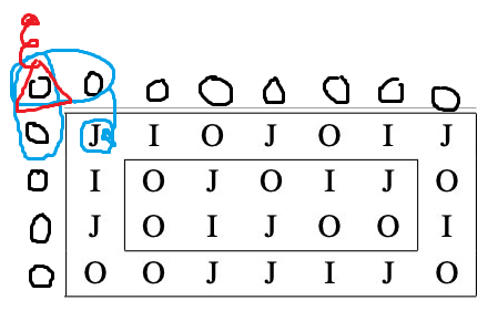 (3,5) (4,7) 사이에 있는 J,I,O의 갯수를 출력
