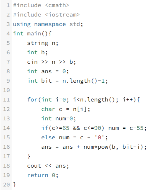 첫째 줄에 B진법 수 N을 10진법으로 출력한다.