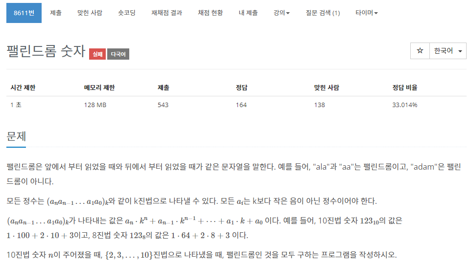8611번: 팰린드롬 숫자