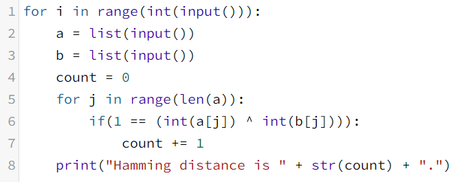그 후, list 길이만큼 for문을 돌리며 list a와 list b를 xor해서 1이 나올 경우 count에 1을 더한다.