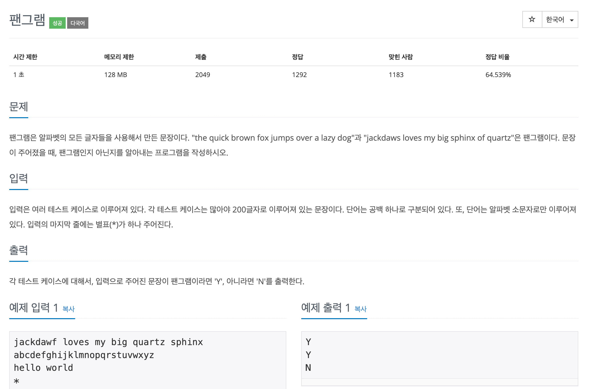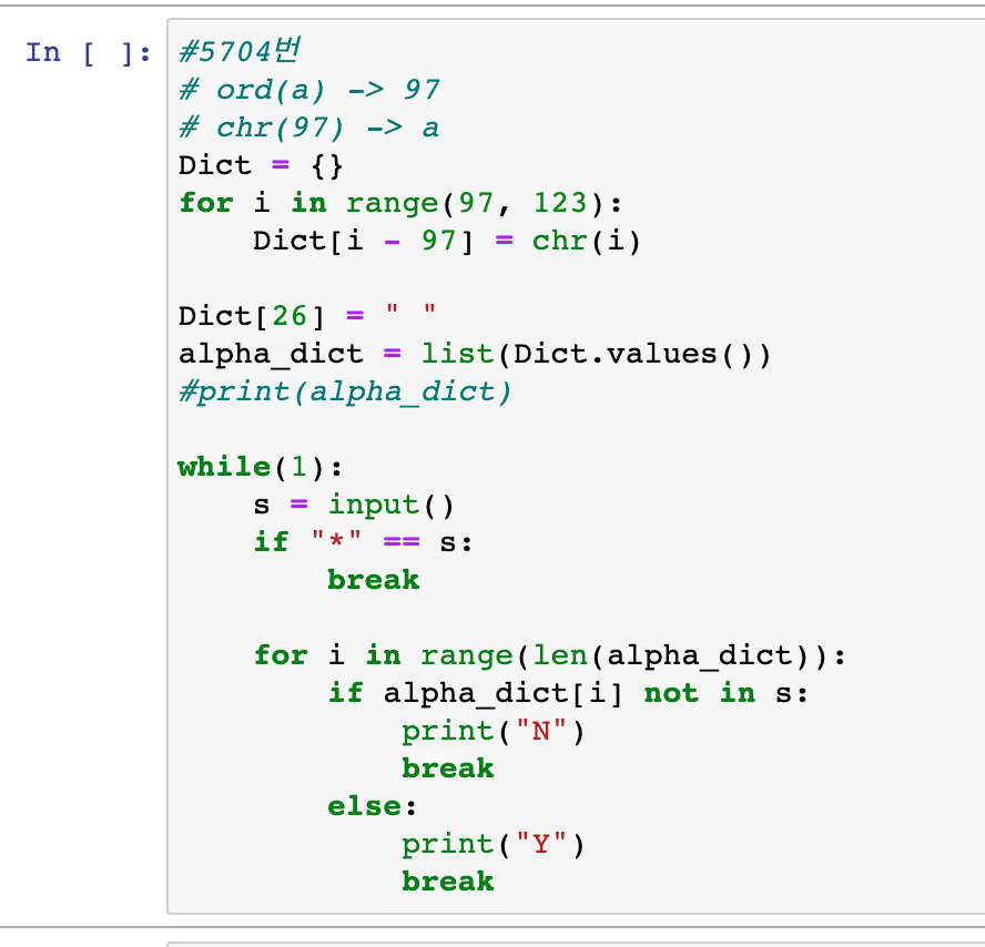 4. 입력 받은 문자열 s와 27개의 문자들간의 비교를 통해 27개의 문자가 모두 문자열 s에 존재하면 'Yes'