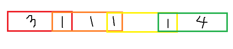 빨, 주, 노, 초 순서로 멀티탭을 연결했을 때를 그려보았다. 각 멀티탭을 연결하는 것은 그 전 멀티탭의 플러그 1개이므로, 각 멀티탭 사이에는 공통된 플러그가 있다. 이 부분을 이용하면 아주 쉽게 코드를 짤 수 있다. 처음에는 이 문제를 배열을 이용하여 풀어야하나 고민이 많았는데, 멀티탭 사이간의 공통된 플러그를 생각해보면 그냥 산수문제인 것을 알 수 있다.