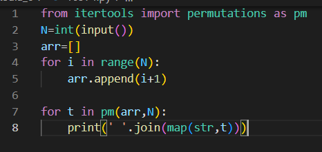 N이 주어졌을 때, 1부터 N까지의 수로 이루어진 순열을 사전순으로 출력하는 프로그램을 작성하시오.