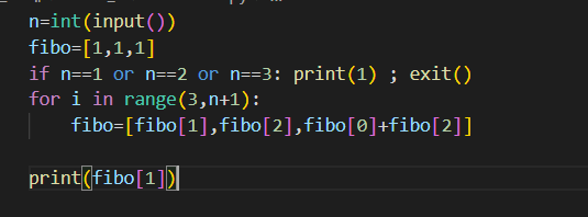 리스트의 2번째 값을 기준으로 fibo를 계속 업데이트하기 때문에 n까지 fibo를 구했을 때 리스트의 2번째값이 n번째 피보나치 비스무리한 수가 된다.