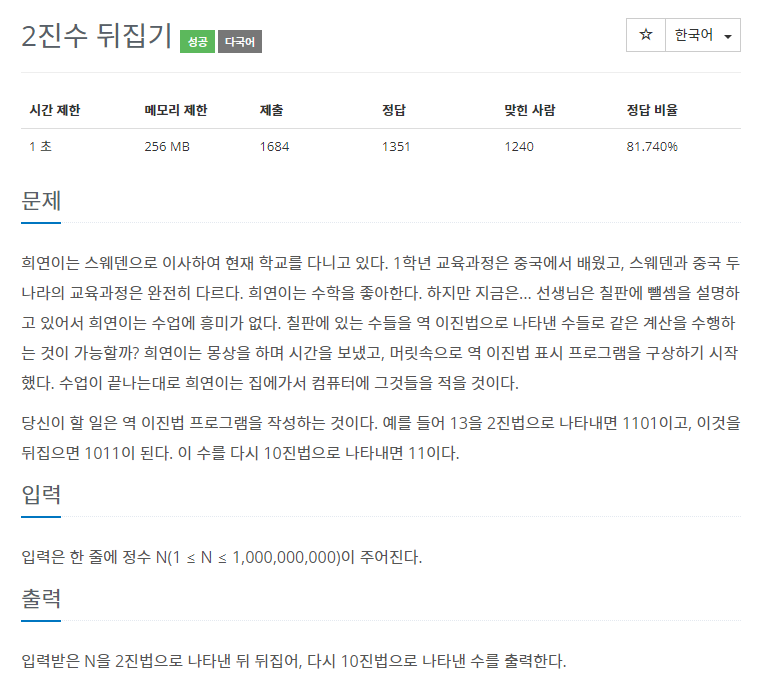 print(int(reverse_bin[:-2], 2)) # 앞의 '0b'를 제거한 값을 다시 10진수로 변환