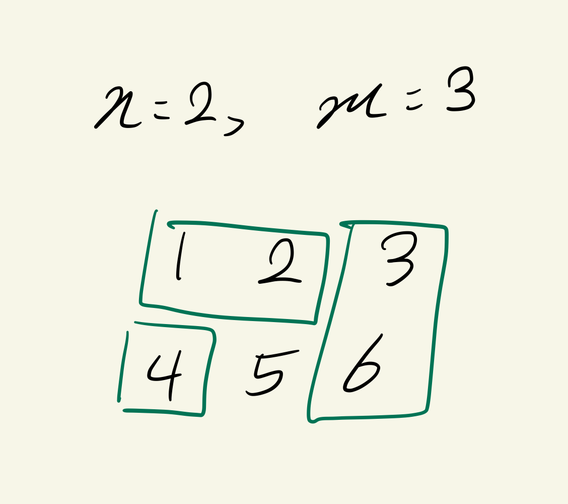 이런 입력이 주어지고, 종이를 초록색 상자와 같이 잘랐다고 가정합시다. 그러면 이러한 상황에서 답은