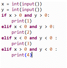 사분면에는 총 4개의 사분면이 있으므로 총 4가지 경우로 나눠주기 위해 if-elif-else문을 이용한다.