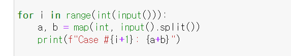 테스트 케이스의 개수를 변수 저장할 이유가 없기 때문에 range안에 입력을 받게 했고,