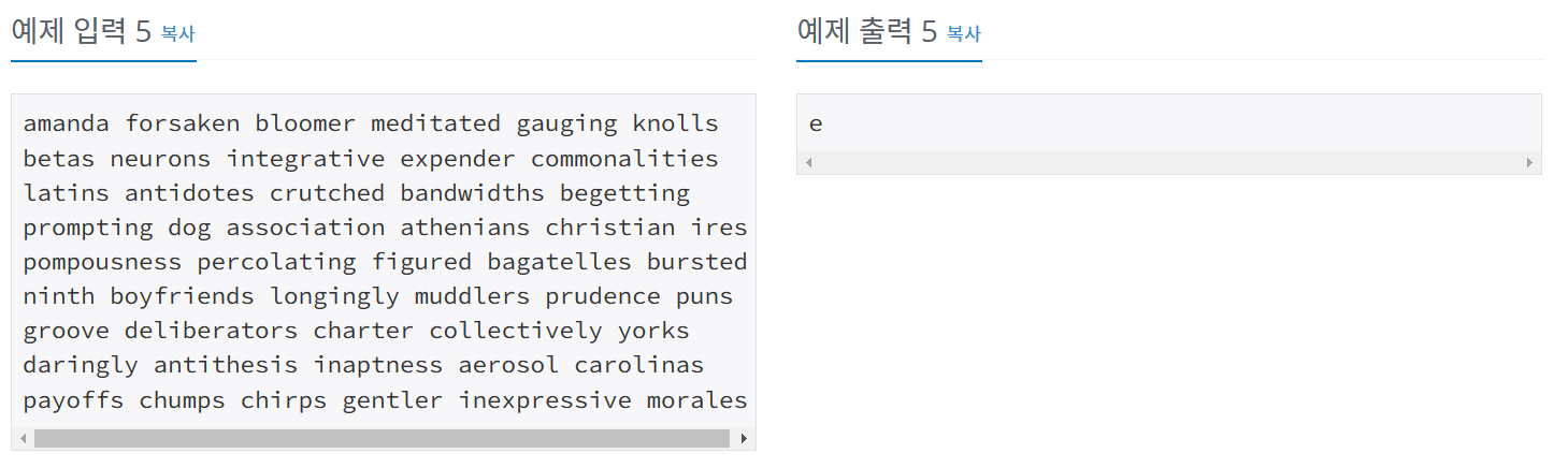 첫째 줄부터 글의 문장이 주어진다. 글은 최대 50개의 줄로 이루어져 있고, 각 줄은 최대 50개의 글자로 이루어져 있다. 각 줄에는 공백과 알파벳 소문자만 있다. 문장에 알파벳은 적어도 하나 이