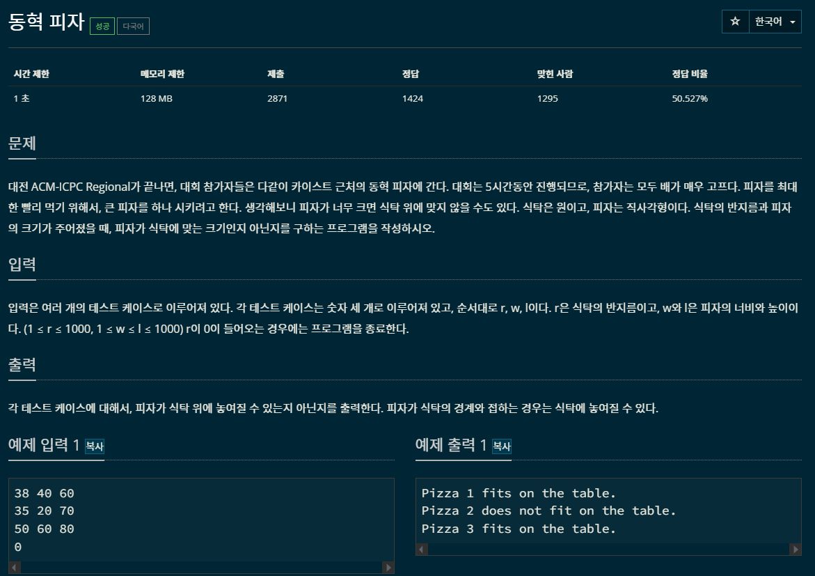 백준 6502 동혁피자