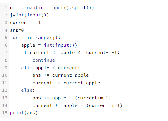1. 사과가 현재 바구니 위치보다 왼쪽에 있는 경우